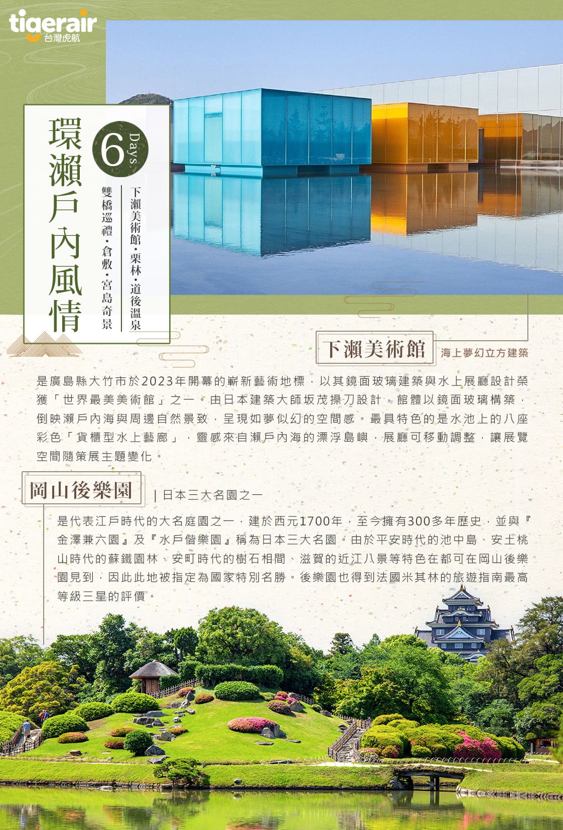 ITOKJ【環瀨戶內風情】雙橋巡禮・宮島奇景・下瀨美術館・栗林公園・道後溫泉6日