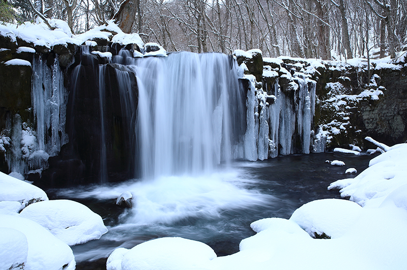 冬季的鳴子峽呈現出截然不同的靜謐氛圍。峽谷兩側的岩壁與樹木被白雪覆蓋,溪流在冰雪間蜿蜒流淌,營造出純白世界的詩意景象。雖然冬天並非紅葉季,但雪景卻展現出另一種壯麗,尤其在晴朗日子裡,陽光映照雪面,閃爍如銀。遊步道部分路段可能因積雪而封閉,但仍能在觀景台欣賞峽谷的雪景,感受東北冬季的清冷與寧靜。