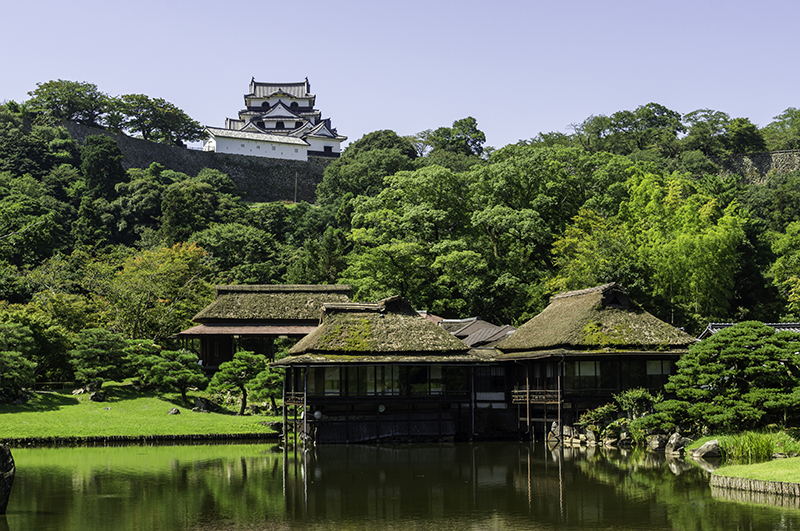 建造於1677年,由彥根藩第4代藩主井伊直興興造,主要自彥根城天守閣東北方的琵琶湖引水,屬於大池泉回遊式的日本庭園,位於整座彥根城的內護城河旁。