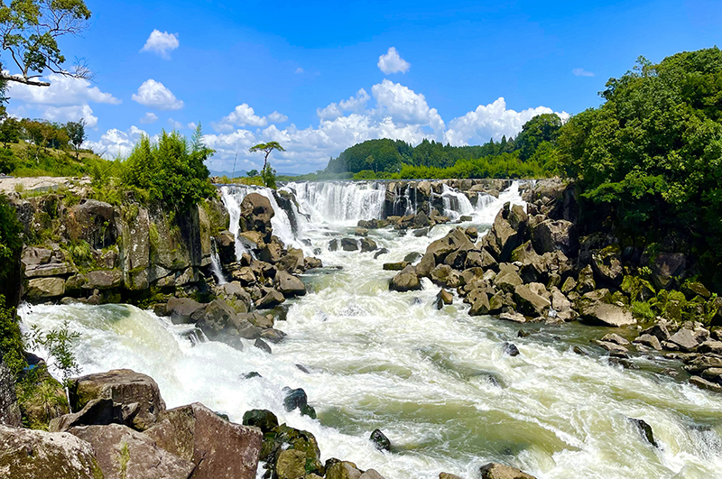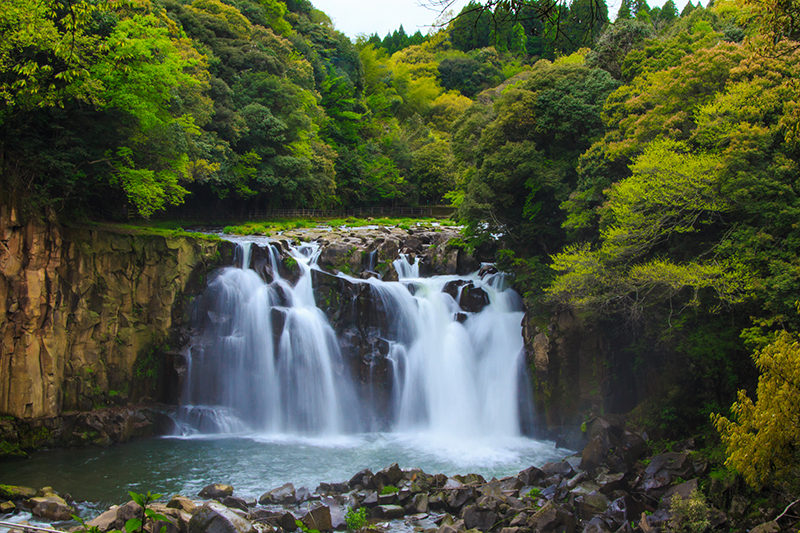 為《日本瀑布百選之一》,寬約40公尺,落差11公尺高,是南九州數一數二的瀑布。大瀧上流有世界最大規模的甌穴群,被指定為國家的自然保護植物。在此瀑布的水源上流有著許多奇妙的洞穴群。是世界有數的甌穴群,瀑布乃是高18公尺寬40公尺分為:大瀧、男瀧、女瀧共三股瀑布映著彩虹狀的吊橋,景色迷人,寬有60公尺長有600公尺的龜甲狀的石疊,在溪中呈現出一片傳奇的美景。
