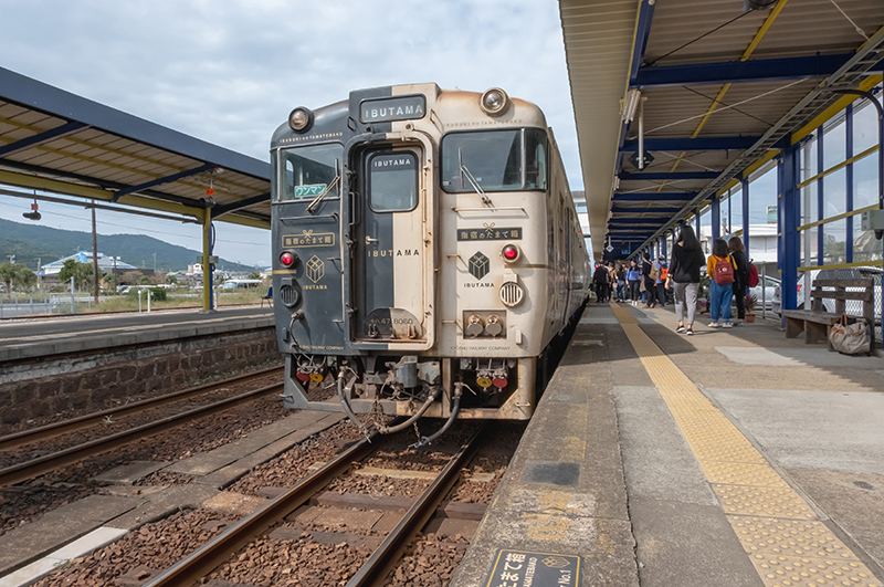 乘坐以薩摩半島廣為流傳的龍宮傳說為主題設計的列車,從鹿兒島中央向指宿方向前進。以大膽採用黑白雙色的外觀和寬敞舒適的沙發坐席為特徵。因為是浦島太郎的玉手箱,以乘車時飄出白色輕煙為噱頭的獨特設計非常引人注目。