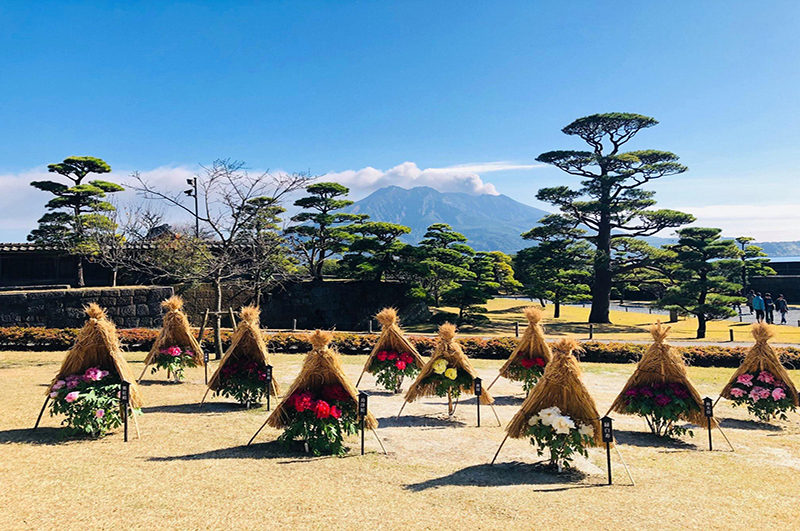 設在大正三年櫻島火山大爆發時流出來的熔岩上,以三百六十度視野全覽整個錦江灣,晴朗的天氣還可以看到遠方美麗壯闊的霧島連山,走在全長達一公里的熔岩原散步道上,可以遠眺廣闊的已漸漸被綠色所覆蓋的熔岩原,觀每個時段不斷變化的煙霧,是觀察熔岩原的首推景點。在蜿蜒的步道旁,有一座日本文學家海音寺潮五郎的歌碑,寫著“在我們眼前的櫻島火山,是西鄉、大久保也曾目睹的噴火之山”。寬闊無邊的熔岩群讓人有如置身在月球的錯覺,貼耳大地,也彷彿可以聽到從地層深處傳出的強勁生命搏動。