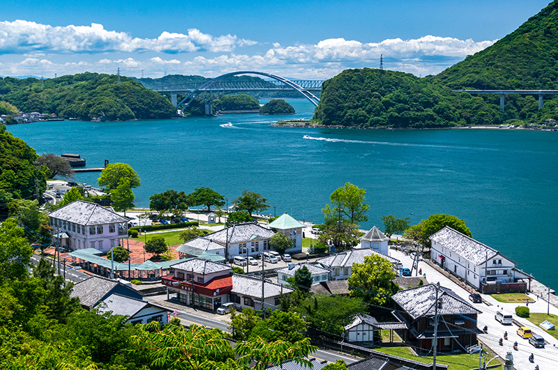 天草國立公園位於熊本縣的西南部,由下島、上島兩個主島和大大小小120座島嶼構成,它和長崎縣的島原半島同屬於雲仙天草國立公園。從熊本縣宇戶半島西端的三角連接到大矢野島、永浦島、大池島·池島、前島、上島的松島的5座橋--天草五橋,通稱為“珍珠路線”,成為遠眺天草錯綜複雜的裏亞式海岸及散落分佈的小島等美景的絕妙觀賞點。17世紀到19世紀的江戶時代,基督教遭到禁止,當時有很多信徒隱居到了天草。天草五橋這五座橋連接三角—大矢野島—永浦島—前島—松島,沿途風光明媚,由於此路線正好是國際知名的觀光路線,因此對天草的觀光業貢獻良多,每年總是吸引許多國外的遊客前去觀光,遊走其上彷彿經歷的一場橋的博覽會。在其海域上有數不清的珍珠養殖場,因此也有天草珍珠道之稱。