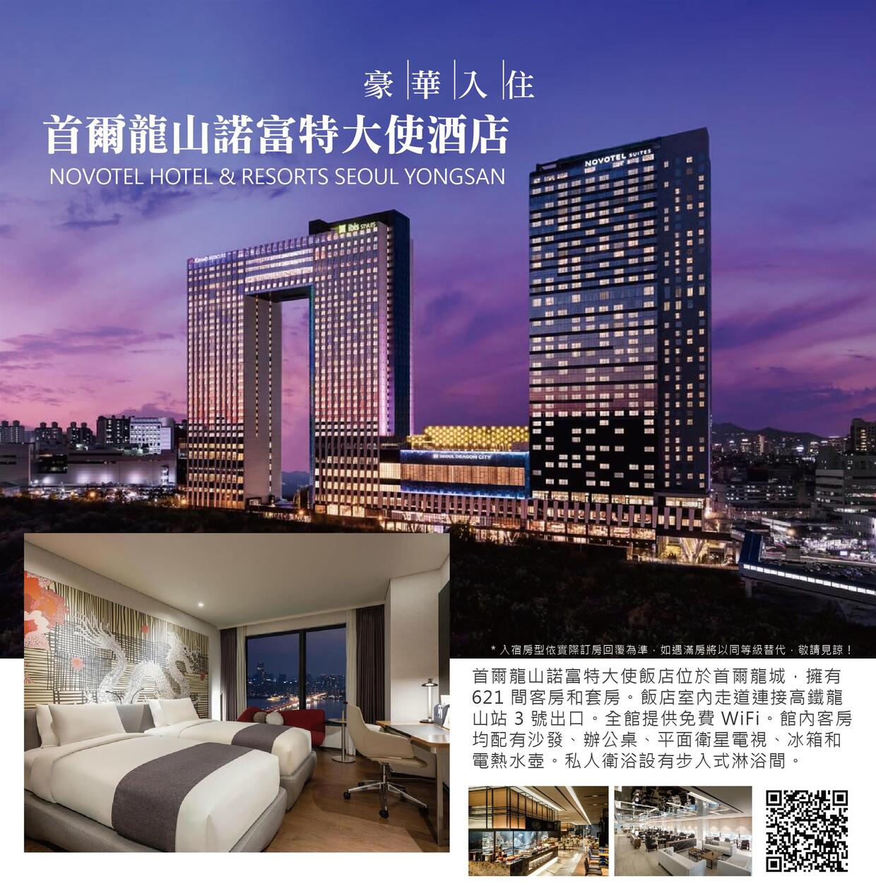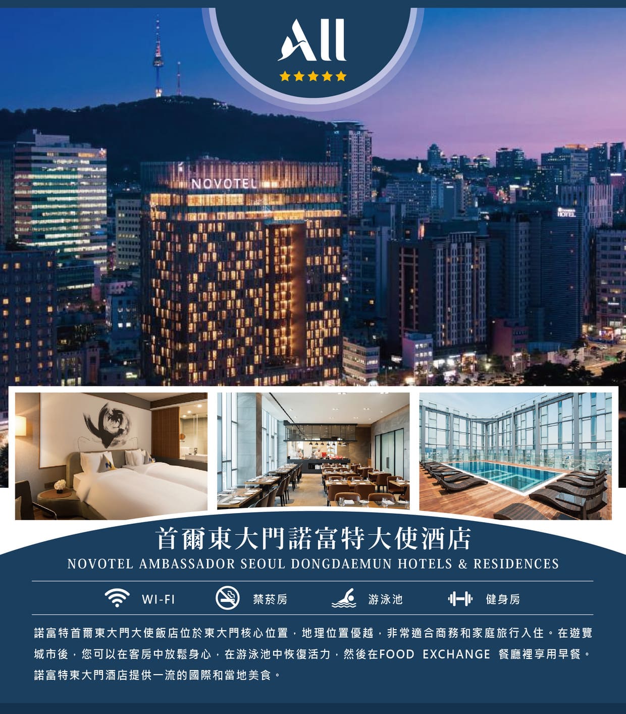 住宿:豪華國際五星~東大門諾富特大使飯店 或 龍山諾富特大使飯店 或同等級