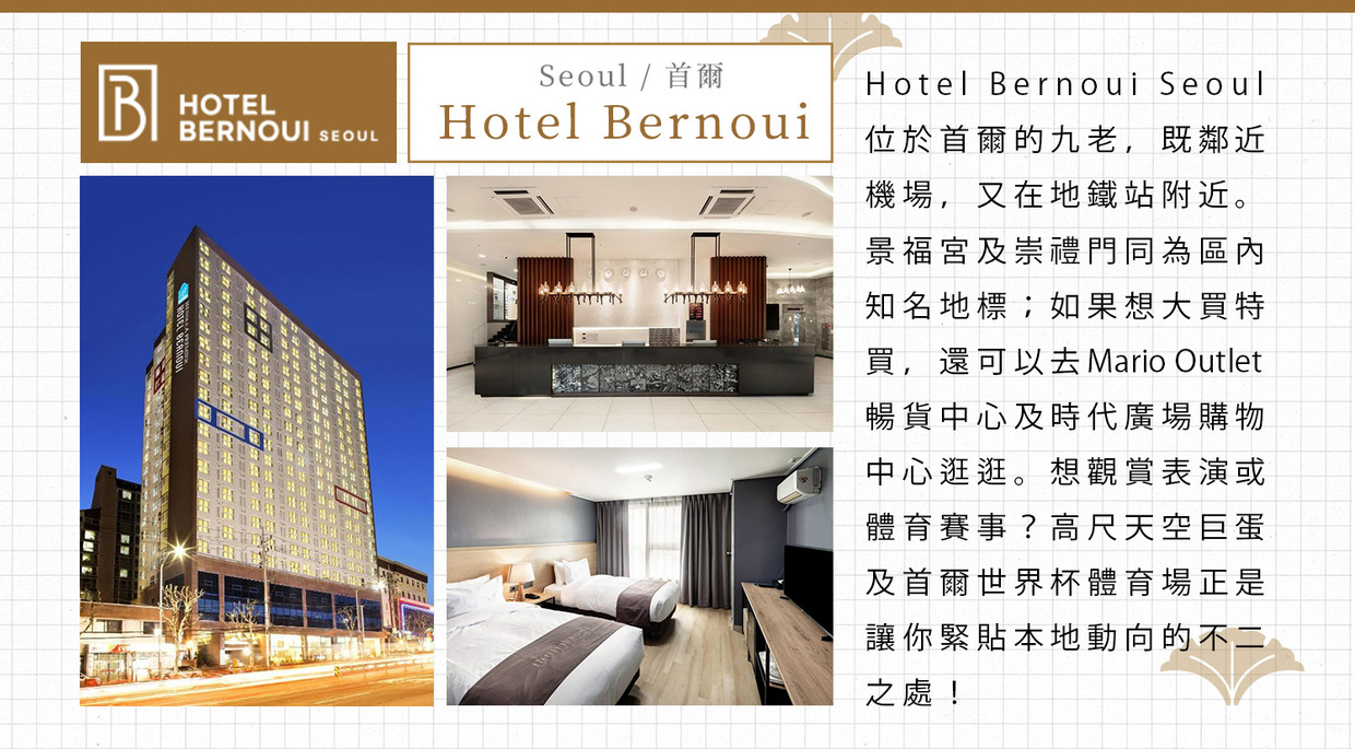 住宿:首爾伯努伊飯店(Hotel Bernoui Seoul) 或同等級