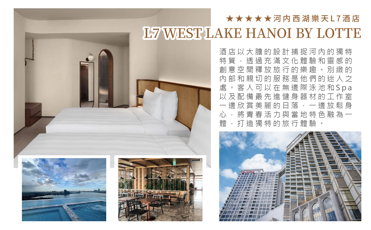 住宿:河內★★★★★ L7 WEST LAKE HANOI BY LOTTE河内西湖樂天L7酒店/或同級 或同等級