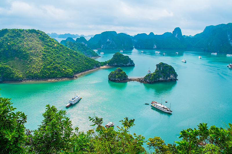 <09:10-10:30>啟航前往探索下龍灣最美麗的風景如:穿行於峰巒疊嶂之中,海面上突出來奇形怪狀的岩石雕刻,繞過九曲十八灣,鬥雞島、小狗石、風帆石、香爐山、天宮洞等數不勝數的風景盡收眼底。在下龍灣坐船遊覽把這宏偉風景區的壯麗進收眼底,坐著船在島與島之間來往參觀,可以發現每個島嶼都有不同的形狀,像一座天然的樓台,山石和幽暗的山洞也是有很多神話故事傳說的地方。