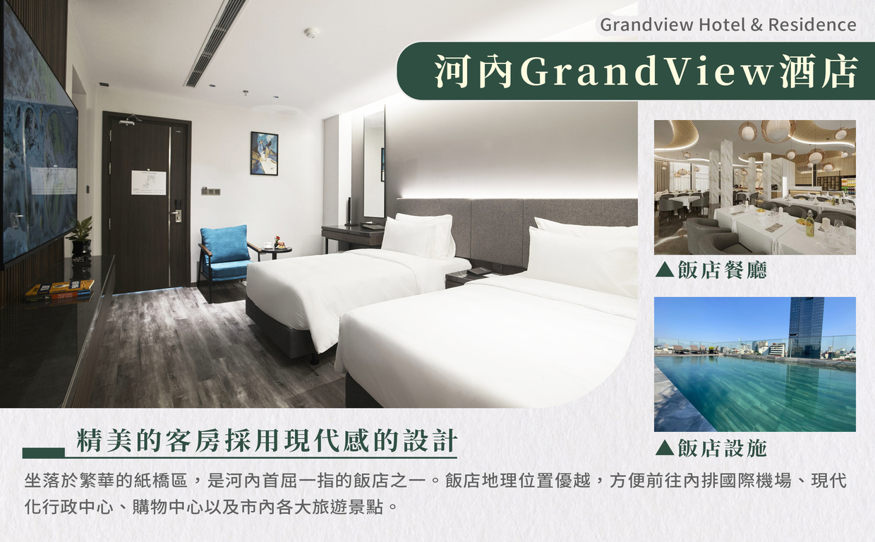 住宿:河內Grandview Hotel & Residence/或同級 或同等級