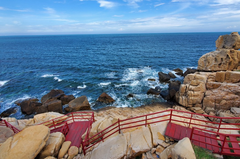 ◆鐘嶼石岬角(五指岩):也稱五指岩,有一個美麗的傳說,聳立在海邊的巨岩有一個清晰的五指手印印在上面,相傳是癡心等待愛人歸來所留下。這裡有多處巨大的花崗岩海角直指南海之中。它是法國電影《情人》的外景拍攝地之一,電影結尾處,男女主角站在海邊的礁石旁,做最後的道別的地方,是一個觀賞夕陽的美麗景點。
